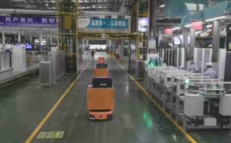 为车载冰箱物流配送打造的智能解决方案,,,,包含产中物流通过潜伏举升AMR搬运至线边,,产后成品物流智能仓储,,,流程包含产中物流智能齐套入库,,线边安灯叫料AMR智能配送至线边,,,成品入库、、、出库,,,,通过无人堆高车机器人,,,,智能仓储管理替代人工作业管理,,,实现更高存储、、、更高效率、、、更具柔性化的解决方案。。。